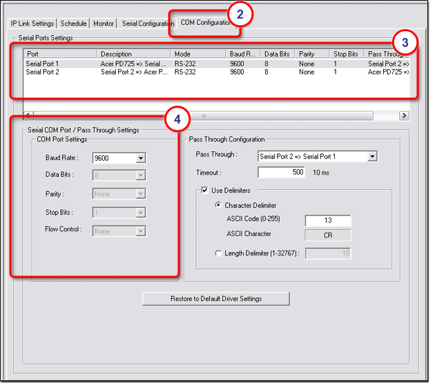 Link The COM Configuration (2) tab: